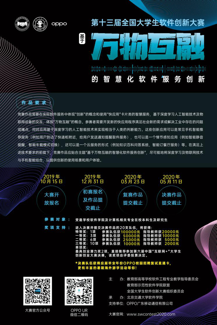 附:全国大学生软件创新大赛是教育部为进一步提升大学生创新思维,全面推动软件行业发展,促进软件专业技术人才培养而设置的全国性赛事。山东大学在过往两届的赛事中均取得了获奖总数全国第一的优异成绩。第十三届大赛将北京交通大学承办,主题为基于万物互融的智慧化软件服务创新。