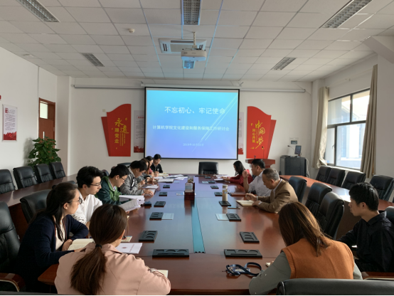 张四化书记在主持中谈到,本次活动作为学院“不忘初心、牢记使命”主题教育调研活动之一,专题研讨学院文化建设和服务保障工作,希望全体与会人员结合各自分管工作提出更好的打造学院文化建设和服务保障的意见和建议;学院办公室主任王君老师传达了郭邦礼书记在《机关干部如何更好的参与“三全育人”》研讨会上的讲话,并谈到学院在“文化育人、管理育人、服务育人”上已有举措,对下一步的工作思路进行了梳理,她表示,学院行政办公室要继续夯实基础工作,建章立制、凝练文化,在一站式服务、规范化管理等特色工作的上取得创新突破;行政办公室全体成员分别就各自分管的工作做了交流汇报,并确立了下一步努力的方向;最后,学生代表们纷纷发言,他们感谢学院一直以来为他们打造的良好学习和生活环境,并围绕学生切身关心的问题谈了想法和感受,希望学院给予进一步支持和指导。