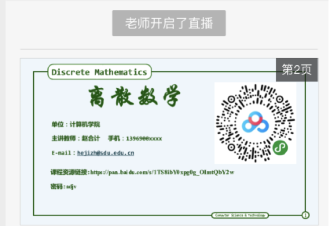 2017级计算机科学与技术专业的雷艳也表示,以前在一个教室上课的同学尽管现在天各一方,但是通过线上教学的方式紧密联系在一起。很多的网上教学平台如雨后春笋般涌现,为教学的持续进行提供有效的技术支撑。比如有雨课堂,腾讯会议,钉钉等。线上大家一样可以听得见老师响亮的声音,一样可以看得见课堂上展示的PPT,重点突出的PPT再加上老师细心的讲解,一样可以传道解惑。线上教学相较于平时课堂也有其独特的优势,老师可以通过雨课堂统计人数,学生还可以发送弹幕与老师互动,发布作业、收看回放,教学效果很好。不仅如此,学校和学院非常体贴的考虑到湖北等疫情严重地区同学以及家中目前无wifi同学的实际困难,给予及时周到的资助,让每一位山大学子在家也可以安心学习。