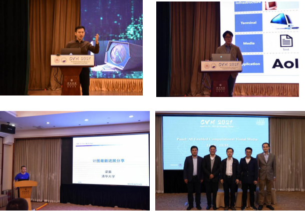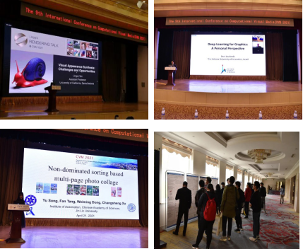 会议主要围绕与可视媒体(图像、视频、数字几何)计算有关的方面进行交流和展开讨论。会议议程包括3个特邀报告、42个大会论文报告、3个特色论坛以及1个海报交流环节。大会的3位特邀报告人为加州大学圣巴巴拉分校闫令琪助理教授、以色列耶路撒冷希伯来大学Dani Lischinski教授、中国科学院计算技术研究所高林副教授。三位特邀报告人在可视媒体计算领域具有深厚的学术造诣,闫令琪博士曾获ACM SIGGRAPH最佳博士论文奖,Dani Lischinski教授曾获欧洲图形学学会杰出技术贡献奖,高林博士为2021年亚洲图形学学会“青年学者奖”获得者,三位讲者介绍了其团队在图形渲染、计算机动画、风格化处理等领域的前沿进展。会议期间,来自北京大学、清华大学、浙江大学、山东大学、香港科技大学、香港中文大学、加拿大圣玛丽大学等大学和研究机构的论文作者介绍了其在图像合成、视觉定位与导航、几何算法、可视化与仿真等领域的最新成果。
