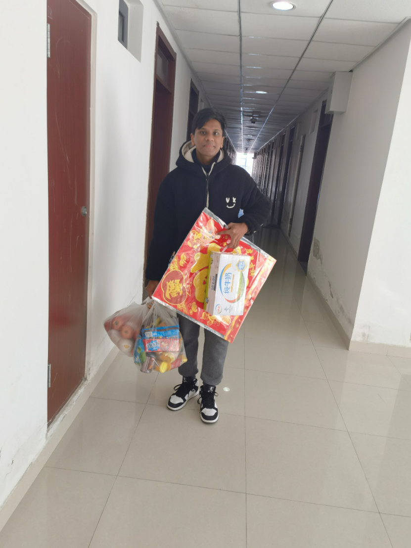 1月30日上午,学院党委书记贾智平、副书记张四化、辅导员李腾龙、胡柞润到学生宿舍对留校学生进行了走访慰问,为同学们购买了水果、饮品作为新春大礼包,并特别针对少数民族同学准备了清真牛奶与清真食品,确保全体留校学生基本生活有保障。