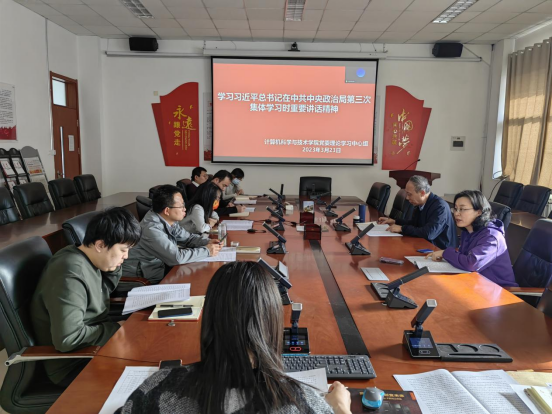 3月23日下午,计算机科学与技术学院召开理论学习中心组扩大会议,集体学习习近平总书记在中共中央政治局第三次集体学习时重要讲话精神。学院党委书记贾智平主持会议,理论学习中心组成员、教工支部全体支委会成员以线上线下相结合方式参加学习。