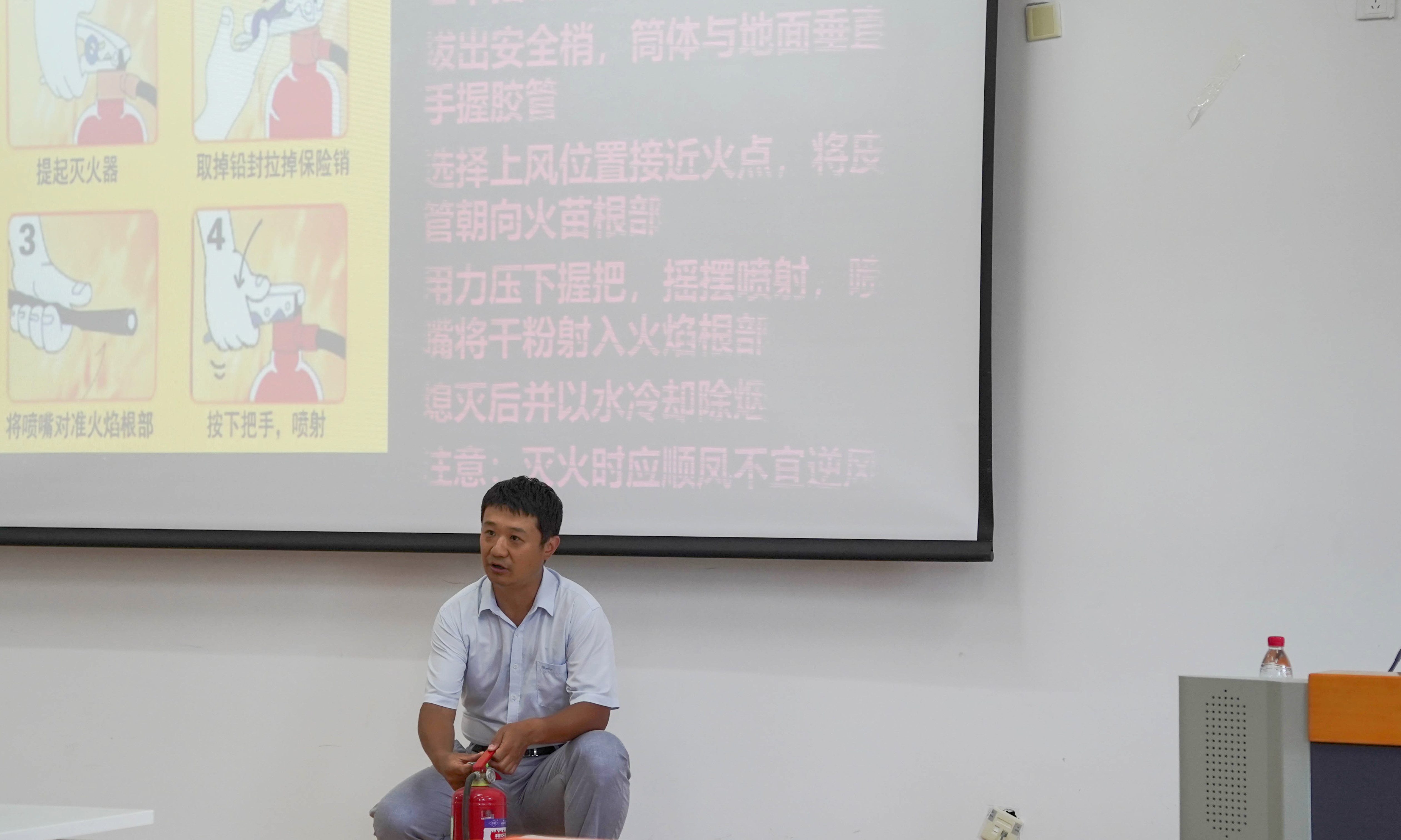 扎实守底线,切实防风险。校区心理健康教育中心于路心围绕环境适应、人际关系、学习适应和情绪管理等四方面新生入学可能会遇到的问题,为同学们提供了相应的疏解方法。校区党工委保卫部孙垚讲解了防溺水、防偷防盗、交通安全、消防安全、电动自行车安全、电信诈骗等安全知识,并现场演示了各种灭火器材的使用方法。学院实验室安全管理员马良讲解了实验室安全规则要求,强调要按照“6S”标准保证实验室安全。