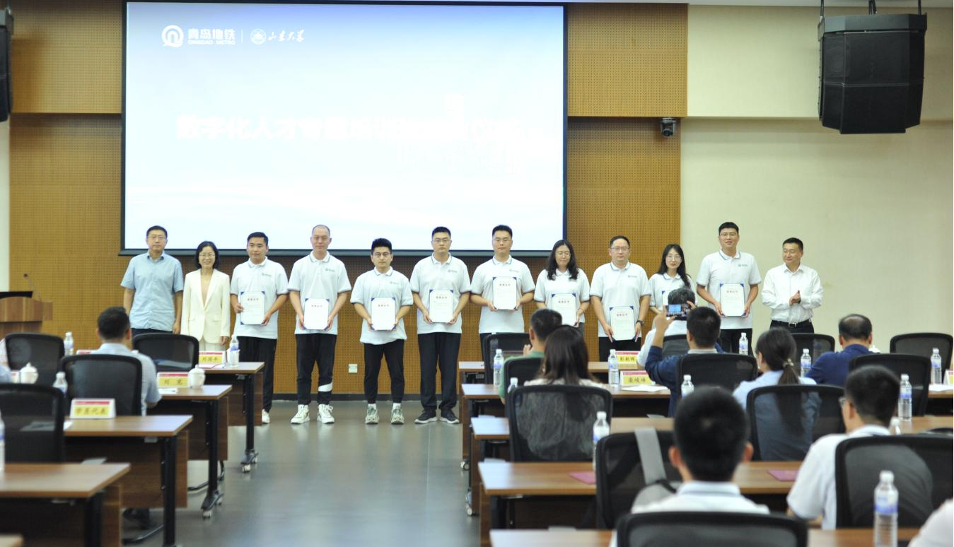 成秀珍表示,希望学员回归工作岗位之后,能够把握时代发展脉搏,学好用好数字化技术,以丰富的知识和强大的能力武装自己,成为全面、创新、复合的高层次数字化地铁人才。同时,她对双方未来进一步的合作提出了一些期望和展望。第一,要搭平台,促交流,通过搭建线上线下交流平台、成立联合研究院等新型科研机构等方式,提供校企共同发展的内生动力。第二,要建机制,求创新,通过建立合理的合作机制,激发双方联合的创新力和竞争力,助力构建青岛地铁发展创新体系和山东大学双一流发展道路。第三,要强融合,筑生态,通过强化学术界和企业界的合作,以青岛地铁的需求带动信息技术和产品在地铁领域的落地应用,加强产学研协作,构建联合发展的新生态。