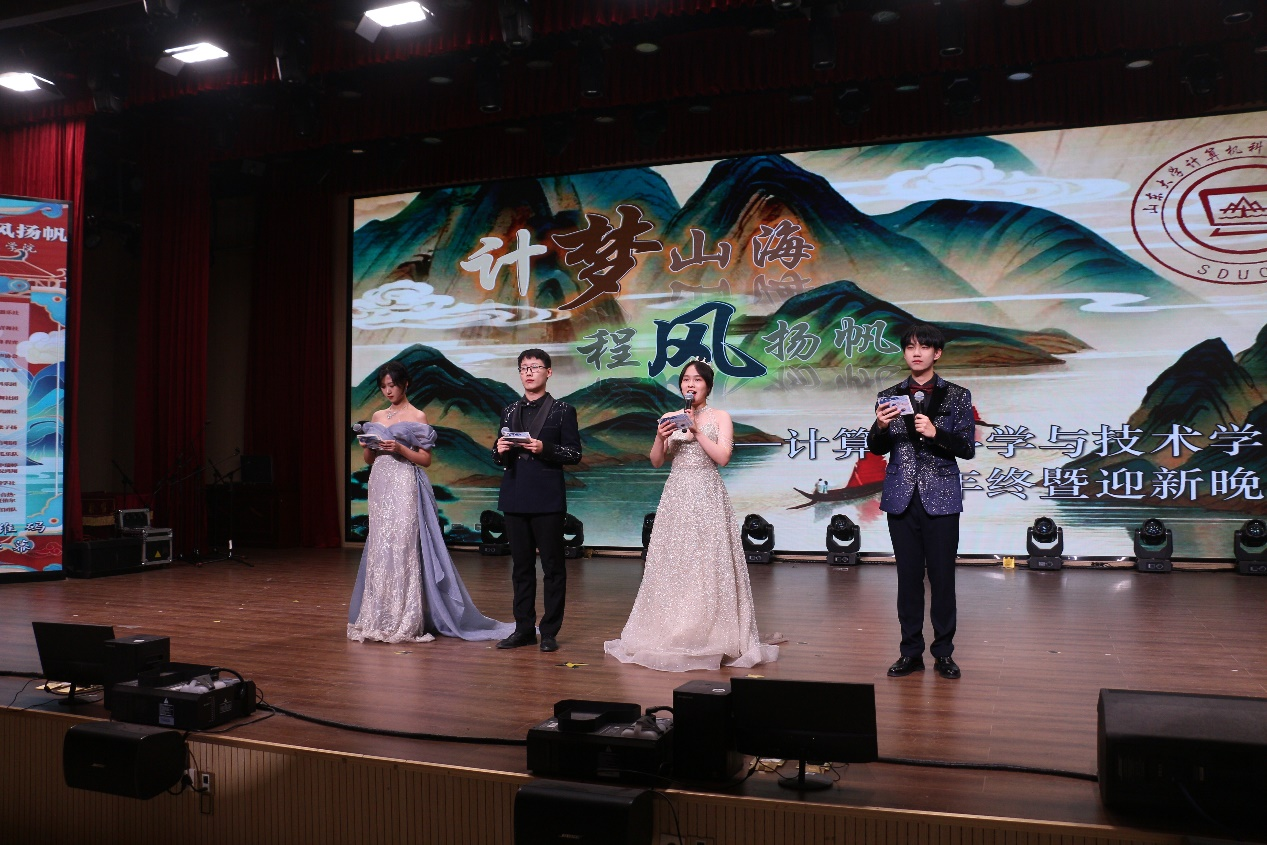 12月9日晚,计算机科学与技术学院举办了“‘计’梦山海,‘程’风扬帆”年终暨迎新晚会。学院副院长于东晓,学院党委副书记张四化,来自校区机关部门、其他学院以及本学院的教师代表,学生代表共计三百余人参加了晚会。