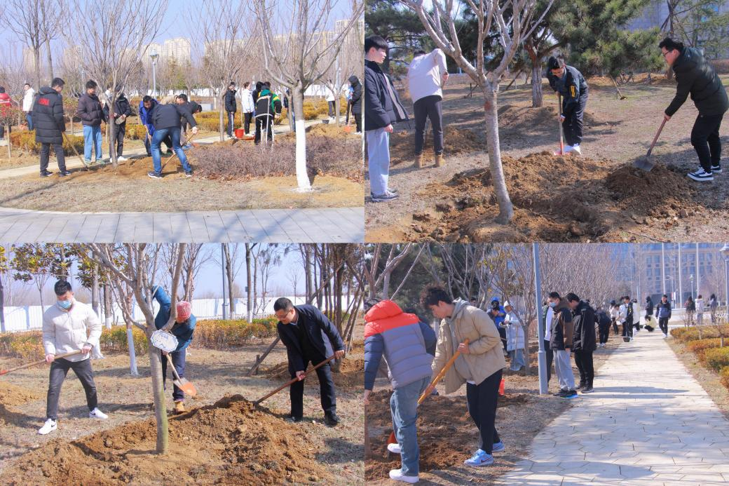 在我国第46个植树节到来之际,为积极响应国家生态文明建设,扎实推进新时代劳动教育,计算机科学与技术学院与青岛校区后勤管理处联合开展了“植青春之绿,养浩然之气”植树节活动。学校党委书记任友群与学院师生共同参加植树活动。