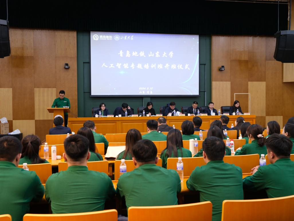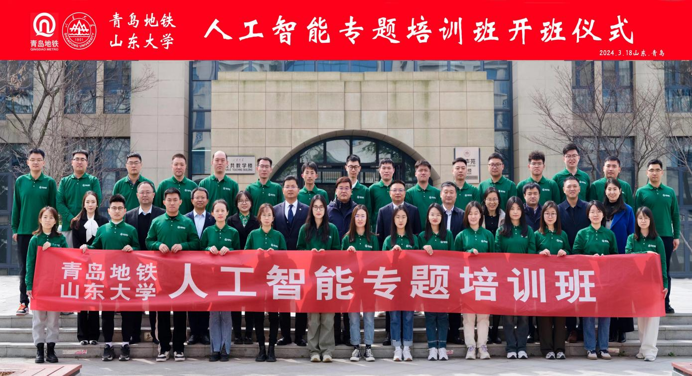 3月18日上午,青岛地铁人工智能专题培训班开班仪式在山东大学青岛校区华岗苑南楼举办。山东大学青岛校区党工委委员、副校长周加强,青岛地铁集团党委委员、总工程师迟建平出席仪式并致辞。计算机科学与技术学院院长成秀珍、党委书记张四化,校区机关相关领导,地铁集团组织人事部、信息管理部、运营公司相关领导参加仪式。开班式由计算机科学与技术学院副院长陈竹敏主持。