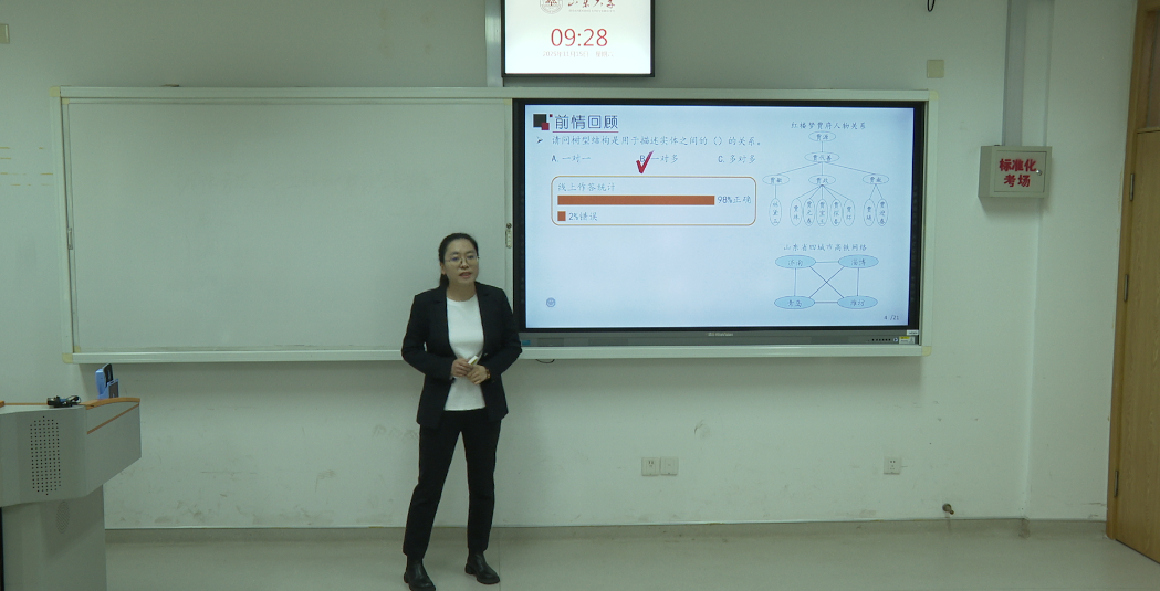 在本次比赛中,杨燕妮讲授了《高级语言程序设计》中“函数模板”相关章节。她秉承“以学生为中心”的教学理念,以古代活字印刷术为导入,突出通用模板的核心思想与优势,便于同学们借助现有知识理解新的方法。采集“对比学习”的教学方法,通过展示函数重载这种旧方法的设计冗余性,对比出函数模板这种新方法的高效性。王芯蕊围绕《数据结构与算法》中“图数据结构及其遍历”章节,创造性设计了“高铁网络建设工程师寻找交通枢纽”模拟情景,以真实工程问题激发学生兴趣。她通过递进式提问、小组协作研讨与算法动画演示,引导学生逐步掌握图的遍历核心逻辑,深刻理解数据结构在解决复杂系统问题中的价值。