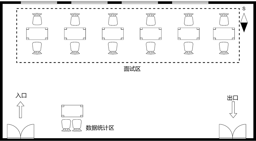 1.主考场设置6个面试席位,考生进入考场后,分别与6个席位的专家进行一对一面试,面试结束后自行起身并寻找有空位的面试席位就坐,每个席位面试时间为10分钟左右。