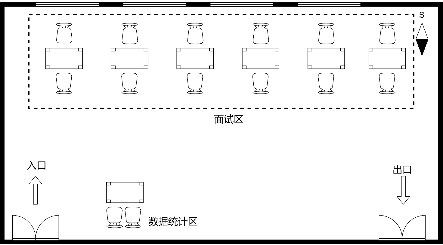 1.主考场设置6个面试席位,考生进入考场后,分别与6个席位的专家进行一对一面试,面试结束后自行起身并寻找有空位的面试席位就坐,每个席位面试时间为10分钟左右。