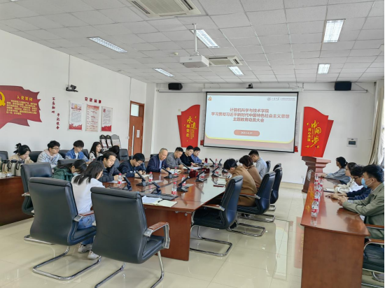 4月21日上午,计算机科学与技术学院学习贯彻习近平新时代中国特色社会主义思想主题教育动员大会在青岛校区第周苑C座332会议室召开。山东大学第十巡回指导组组长、青岛校区组织宣传统战部部长刘竞虹,副组长信息科学与工程学院党委副书记李鸿娟,学生工作处宋继斌同志到会指导。学院党委书记贾智平主持会议。