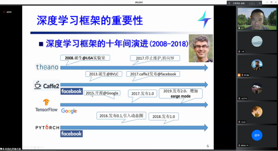 梁盾博士首先介绍了计图等机器学习的框架,以及计图框架在运算速度和内存上的优越性以及原理。接下来梁盾博士介绍了很多使用计图框架做的优秀的工作以及开源的代码和数据集。在会议的下半场,梁盾博士演示了计图的使用方法,以及如何从零开始使用计图框架,又介绍了从其他机器学习框架转换为计图框架。让同学们不仅学到了计图的原理优越性,还可以按照教程自己动手去操作、去实践。报告结束之后,梁盾博士与老师同学们进行了热烈的讨论,并且认真解答了关于计图框架的技术疑问。